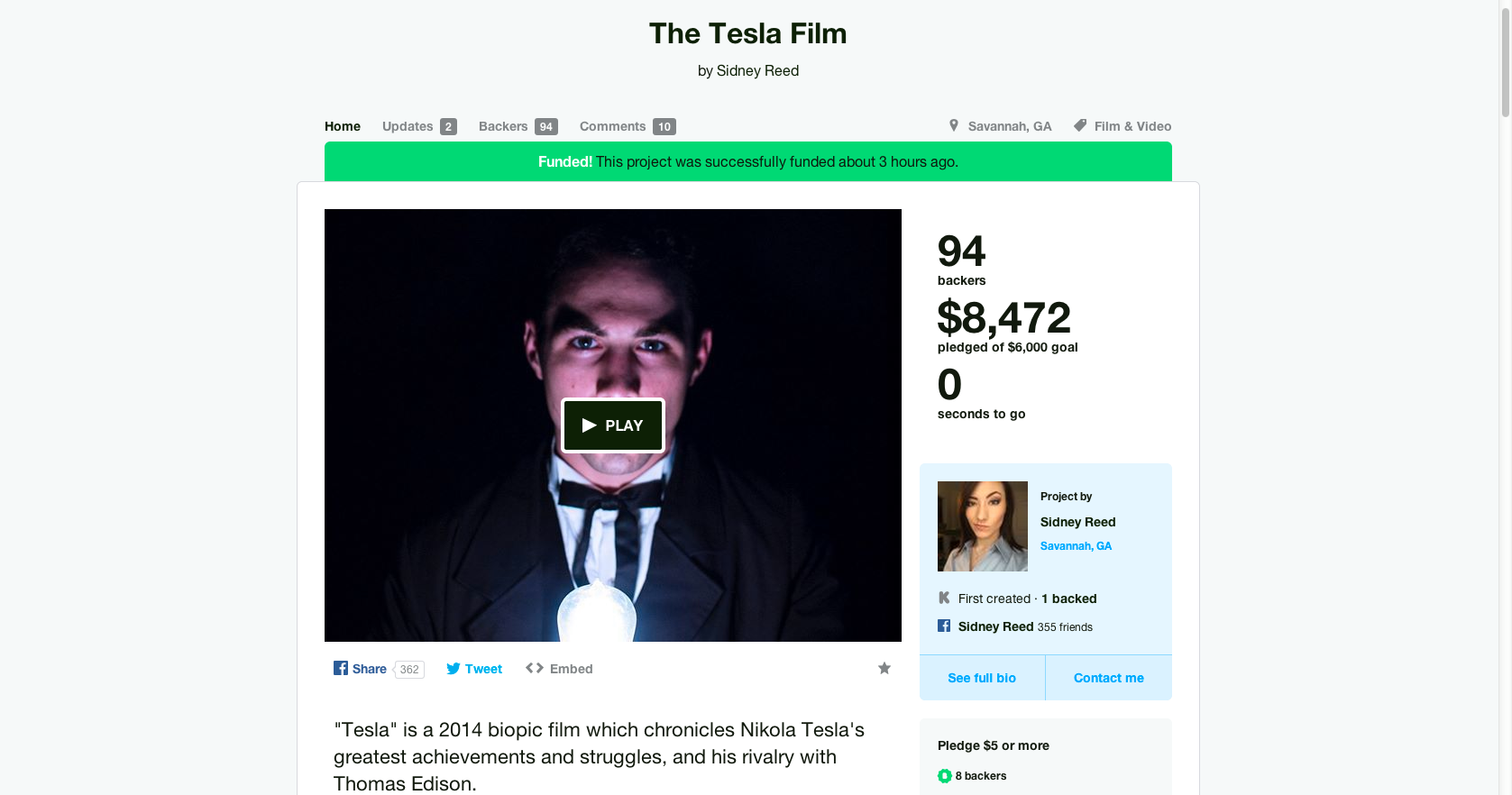 https://www.kickstarter.com/projects/sidneyreed/the-tesla-film?ref=nav_search